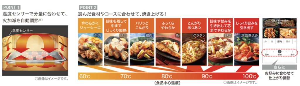 「石窯おまかせ焼き」という名のとおり、庫内で熱を均一に循環させて、外はこんがり、中はジューシーに焼き上げてくれます
