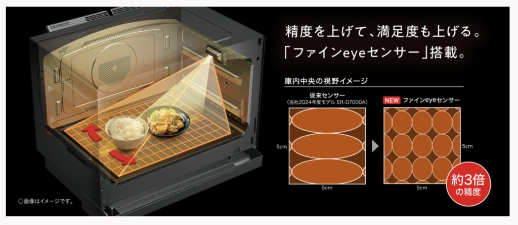 東芝ER-D80Aの「ファインeyeセンサー」は、温度だけでなく“食材の表面状態”を細かく検知。熱が偏って伝わる部分を自動で補正し、ムラなく温める設計なんです。
