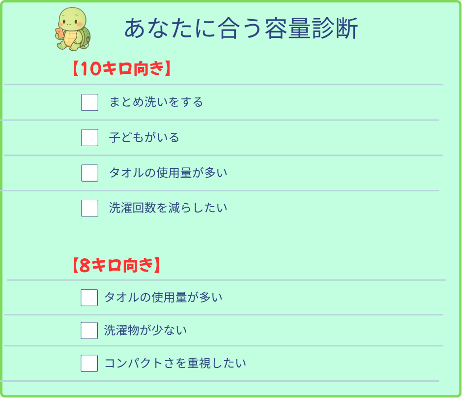この記事を読めば、あなたの家庭に8キロの洗濯機が合っているのかを判断でき、後悔せずに選べるようになるよっ!