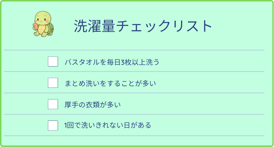 その理由は、人数が1人増えるだけで洗濯量が大きく増えるためです。