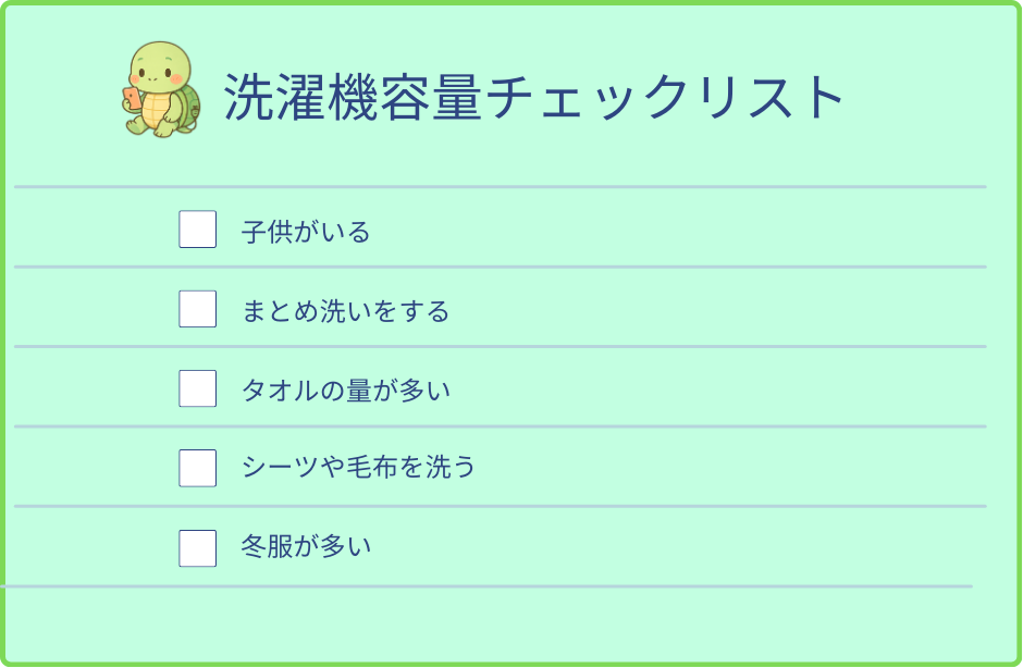 洗濯機容量チェックリスト
