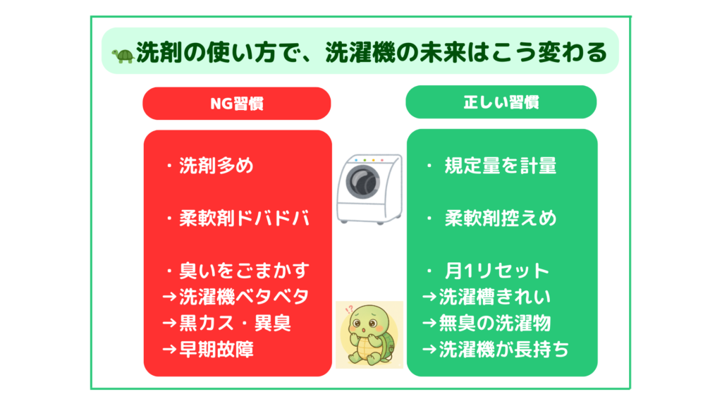 【図解② 洗剤を「多めに入れる人」と「適量の人」の末路比較】